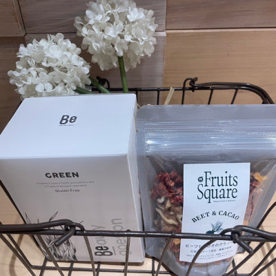 ビーツの奥深い甘みと、個性豊かなドライフルーツ、葉酸やカルシウム、マグネシウムなどの栄養素を含む、北海道産ビーツパウダーを豆乳を含ませカリカリに焼いた有機オーツ麦に絡め、食物繊維・ビタミン・カルシウムなどを含む、くるみ、カシューナッツ、カカオニブ、華やかで少し酸味のあるドライインカベリーや有機ドライアップル、ドライマンゴーを合わせ、1食(40g)でも手軽に栄養が摂れるグラノーラに仕上げました。